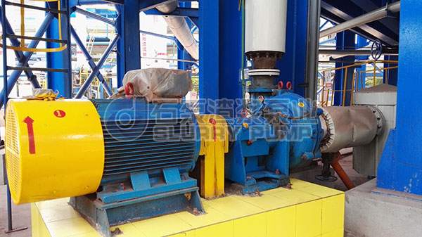 化工磷石膏堆场整改工程项目, 输送介质:含水70%~75%的磷石膏泥浆(其中含0.8%P2O5,F:0.15%),介质温度:≤70℃,介质性质:腐蚀、磨蚀;泵进口压力: 1.8MPa,泵出口压力:2.8MPa,流量:500m3/h,扬程:87m ,配套电机:280KW-6/IP44/F/380V,我厂石泵九游会·j9中国官方网站-首页业技术工程师到现场为客户个人化服务,对于输送工况输送浆体进行详细分析,做出高效节能的解决方案。